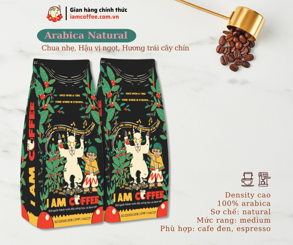 Thành phần: 100% cà phê arabica nguyên chất.